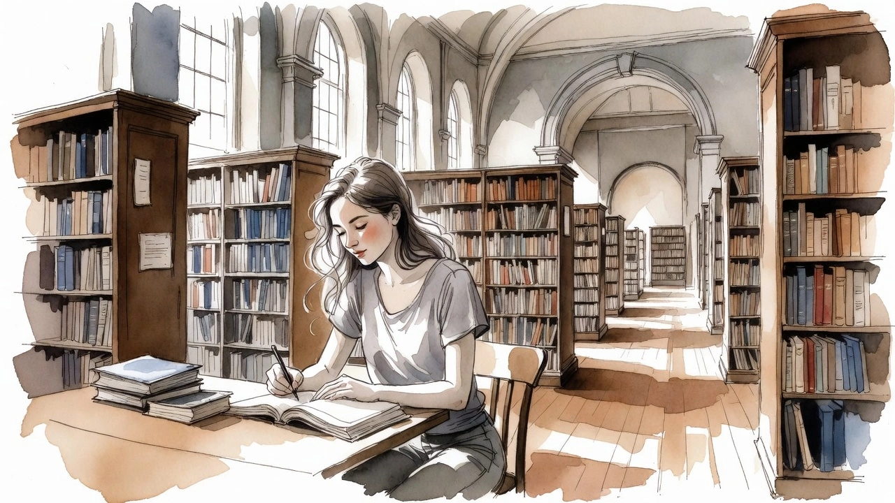 Sofia considers the library her intellectual refuge. During her visit, she reviews primary sources for a critical essay, exploring historical perspectives. She takes exhaustive notes, highlighting key quotes. She also consults a digital catalog to find recent articles. Upon finishing, she organizes her materials and feels satisfied with the depth of her research. She reflects on how this space fosters critical thinking and the possibility of exploring ideas independently.